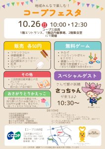 コープこうべ三田西店(富士が丘2丁目)から案内がありました「コープフェスタ」について、下記によりお知らせします。様々な地域のグループ・団体が各種の催しを行います。