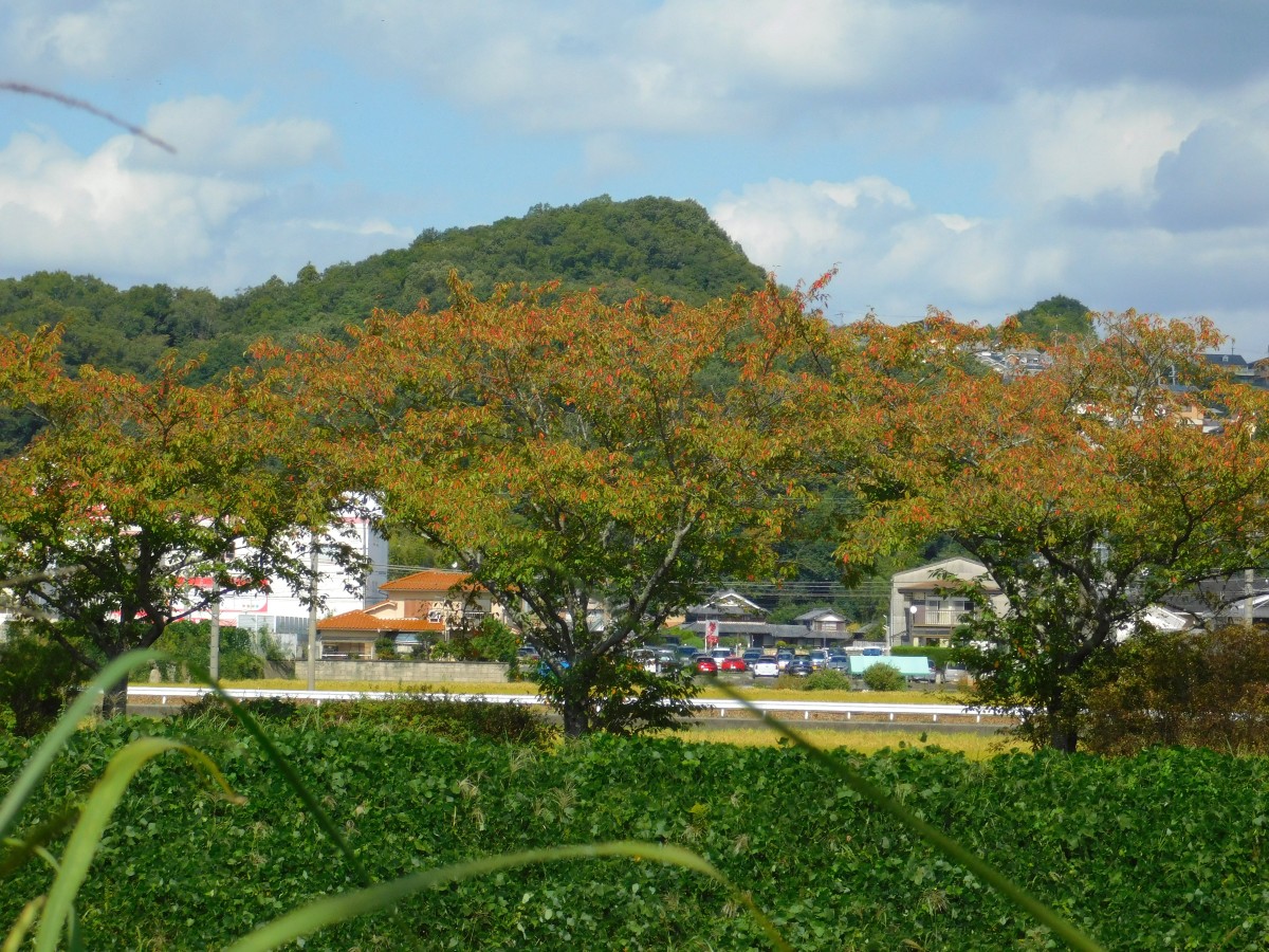↓総合文化センター付近から武庫川左岸を見ると、木の葉が紅葉し始めていました。
