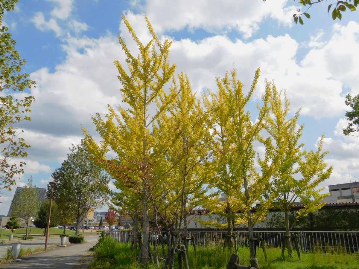↓総合文化センターの駐車場前付近のイチョウの黄葉
