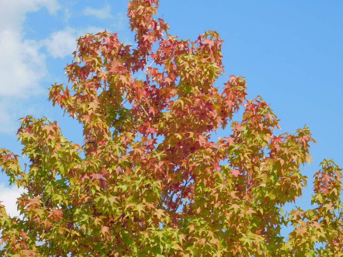 ↓総合文化センターの駐車場前付近のモミジバフウの紅葉