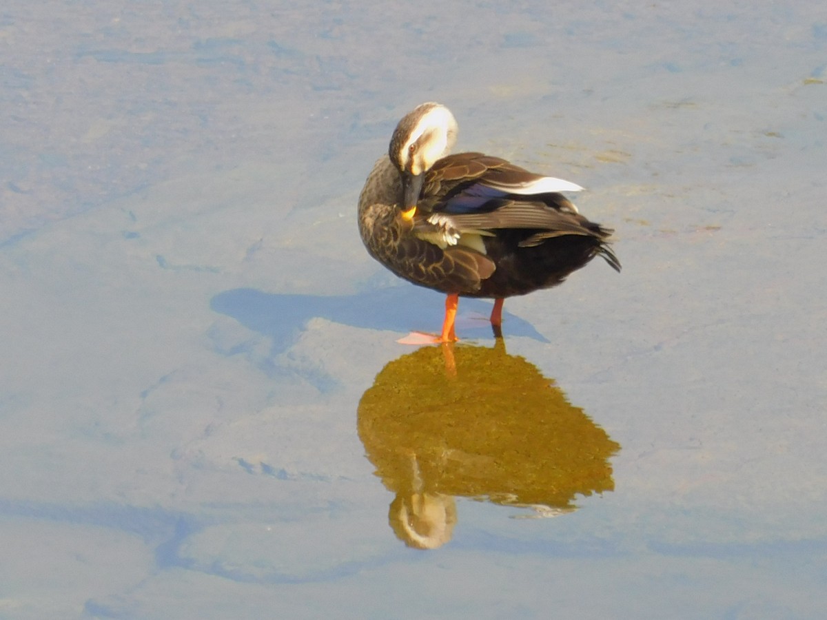 ↓武庫川本流の中でカルガモは何をしているのかな?