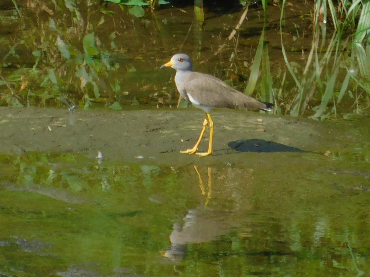 *対岸の水辺に何かがじっと立っているようなので、ズームで見てみると鳥のケリでした。足が長いです。