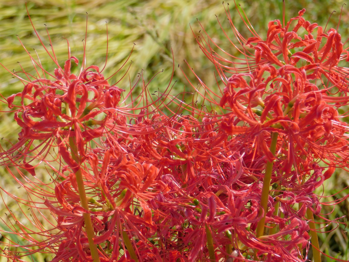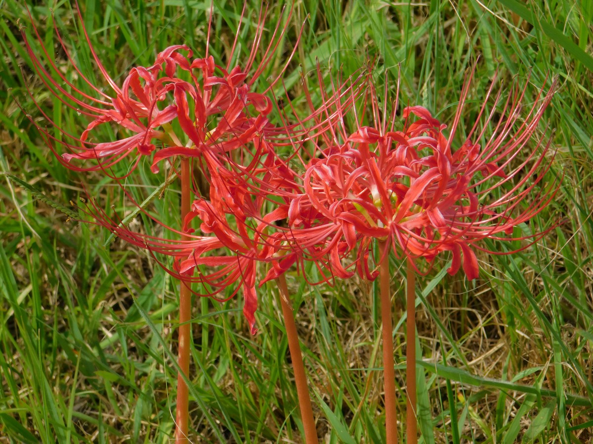 *花期の終りなのでヒガンバナは少なくなっていて、しかも傷んでいる花が多いので、写真を撮る場合は花を選ばないといけません。