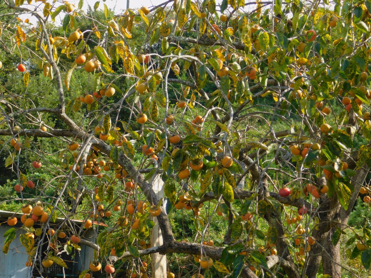 ↓富士が丘の住宅近くの木に、小さい柿の実がたくさん生っていました。