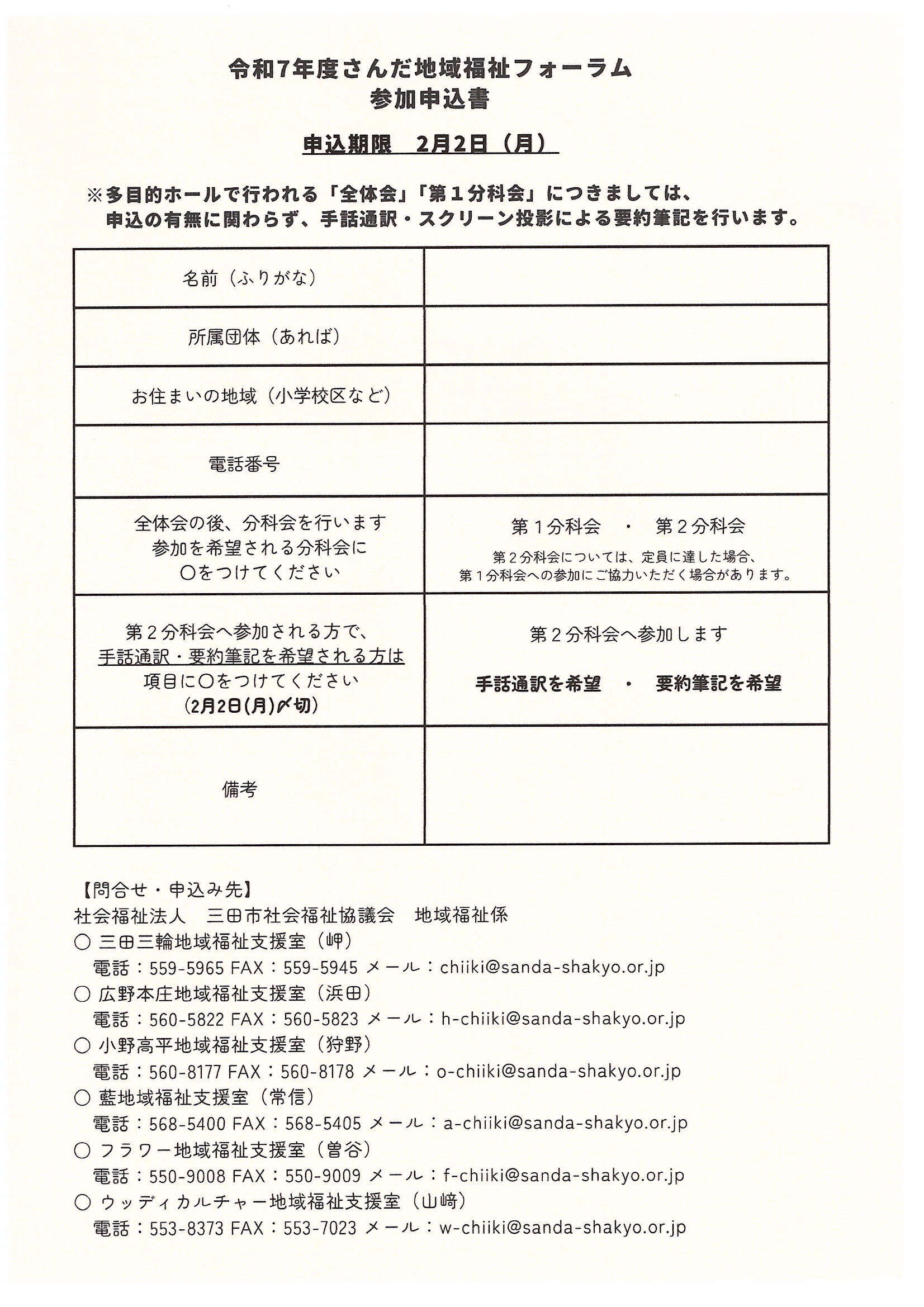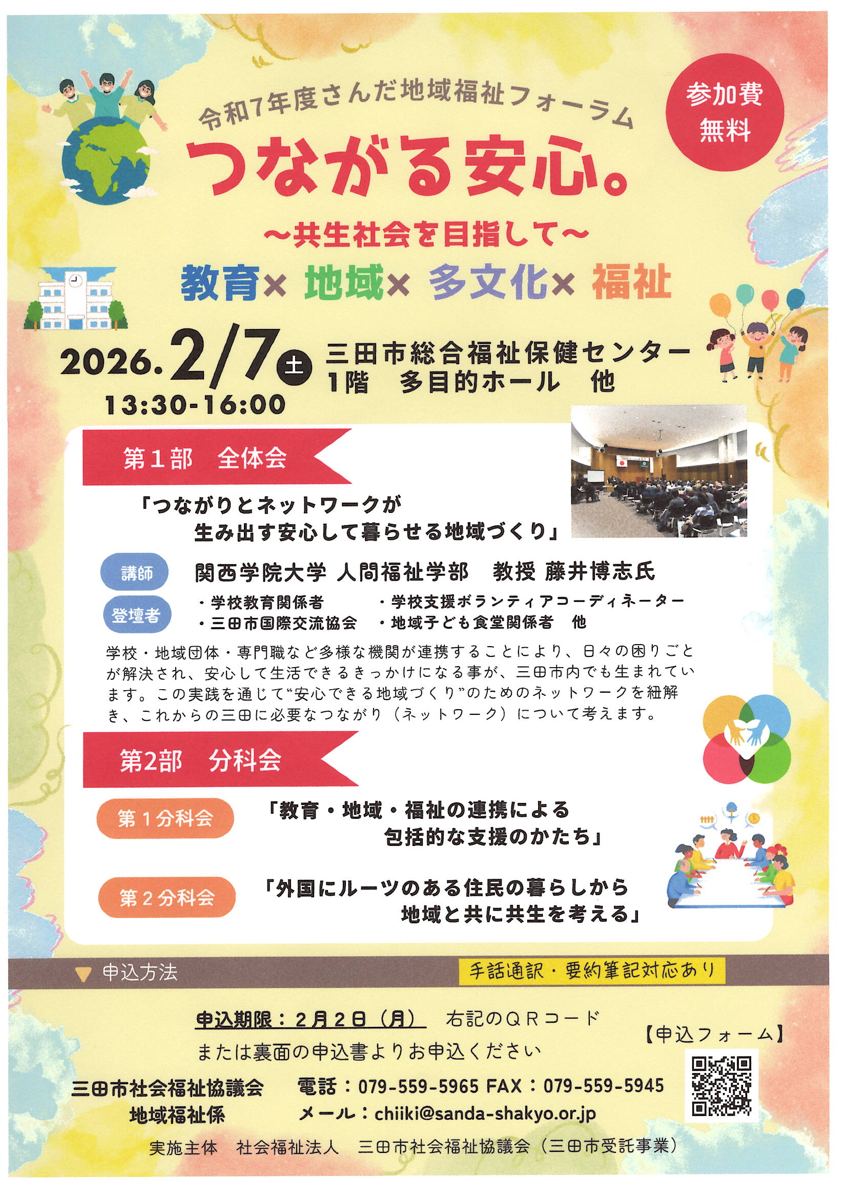【募集】2/07(土)令和7年度さんだ地域福祉フォーラム ~三田市総合福祉保健センター~