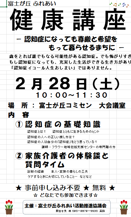 ふれあい健康講座 今回のテーマは「認知症」